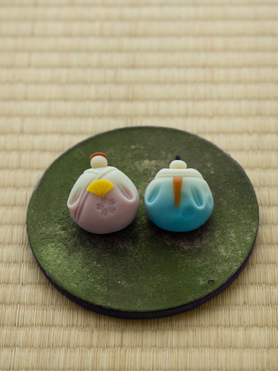 雛人偶(男)、雛人偶(女)、水仙、草莓、春霞(5入 / 練切製)